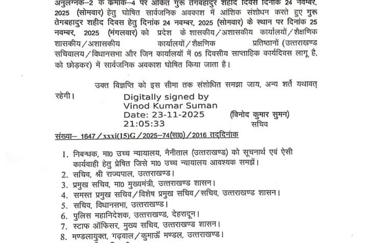 निर्भीक कलम देहरादून। उत्तराखण्ड सरकार ने गुरु तेग बहादुर शहीद दिवस पर घोषित सार्वजनिक...
