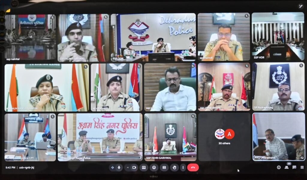 पुलिस महानिदेशक, उत्तराखण्ड द्वारा दिनांक 30 अगस्त, 2025 को आयोजित अपराध एवं कानून व्यवस्था संबंधी समीक्षा गोष्ठी में दिये गये निर्देशों के अनुपालन की स्थिति की समीक्षा हेतु आज डॉ. वी. मुरुगेशन, अपर पुलिस महानिदेशक, अपराध एवं कानून व्यवस्था, उत्तराखण्ड द्वारा गढ़वाल एवं कुमाऊं रेंज सहित एसटीएफ एवं समस्त जनपदों के वरिष्ठ/पुलिस अधीक्षकों के साथ वीडियो कॉन्फ्रेंसिंग के माध्यम से एक उच्च स्तरीय अपराध एवं कानून व्यवस्था समीक्षा बैठक आयोजित की गई।