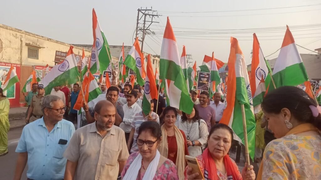 शनिवार शाम नजीबाबाद रोड स्थित एक बारात घर से तिरंगा यात्रा निकाली गई। यात्रा को गढ़वाल सांसद अनिल बलूनी व लैंसडौन विधायक दिलीप सिंह रावत ने सलामी देकर रवाना किया। यात्रा में सबसे आगे एनसीसी के बच्चे सौ मीटर लंबा तिरंगा लेकर चल रहे थे। नजीबाबाद रोड, झंडाचौक, बदरीनाथ मार्ग से होते हुए तिरंगा यात्रा मालवीय उद्यान में पहुंची। जहां सांसद अनिल बलूनी ने सेना के पराक्रम को याद किया। कहा कि पहलगाम में आतंवादियों ने पर्यटकों पर हमला किया था। इसके जवाब में हमारी सेना ने पाकिस्तान में घुसकर आतंकवादियों के ठिकानों को तबाह किया। कहा कि प्रत्येक देशवासी को भारतीय सेना पर गर्व है। कहा कि देश के प्रधानमंत्री नरेंद्र मोदी ने पाकिस्तान को सख्त चेतावनी दी है। यदी वहां से गोली चली तो भारतीय सेना यहां से गोला दागेगी। विधानसभा अध्यक्ष रितु खण्डूडी भूषण ने कहा कि ऑपरेशन सिंदूर ने बता दिया कि आतंकवाद को किसी भी हाल में बर्दाश्त नहीं किया जाएगा। आज हमें अपनी सेना पर गर्व होता है। प्रधानमंत्री नरेंद्र मोदी ने पाकिस्तान को भी बता दिया कि खून और पानी एक साथ नहीं बह सकता। इस मौके पर भाजपा जिलाध्यक्ष राज गौरव नौटियाल, माहपौर शैलेंद्र रावत, ऋषि कंडवाल, महमूदा मुस्कान,सुमन कोटनाला, विपिन कैंथोला आदि मौजूद रहे।